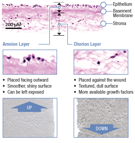Placental Tissue is a rich source of extracellular matrix proteins and growth factors that have been shown to be involved in the natural wound repair process (1) and is commonly used in a wide array of therapeutic applications, including wound care and orthopedics. (2, 3) The processing and preservation of the placental tissue allograft will influence the preservation of those growth factors. (4, 5)